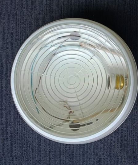 acier + verre à lentille de Fresnel signé Holophane sans ampoule