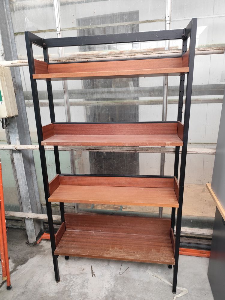Bibliothèque, Etagère murale vintage en bois et métal
