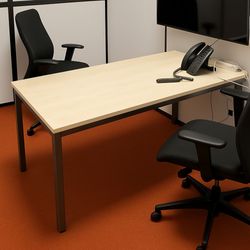 Plateau: coloris Acacia + goulotte, voile de fond Chant: Chant Droits, Acacia, épaisseur 30 mm Piètement: Piètement Ajustable forme Tube rond Argent Prix Neuf : 450 euros
