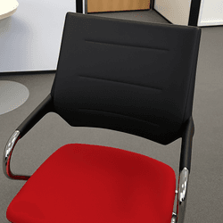 Chaise de collectivité : piètement Roulettes Chrome, Dossier Tissu Gris, Assise Tissu Rouge, accoudoirs fixes Prix Neuf : 390 euros