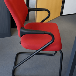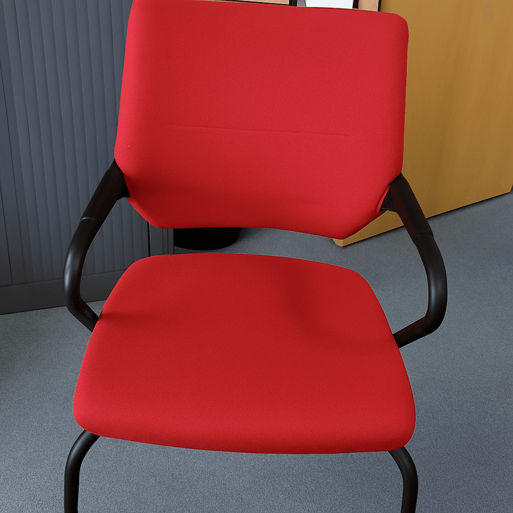 Chaise de collectivité : piètement Roulettes Noir, Dossier Tissu Rouge, Assise Tissu Rouge, accoudoirs fixes Prix Neuf : 390 euros
