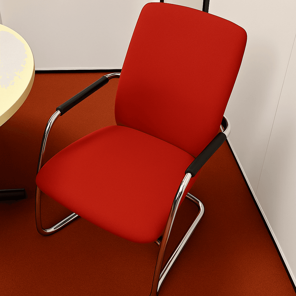 Chaise de collectivité : piètement Luge Chrome, Dossier Tissu Rouge, Assise Tissu Rouge, accoudoirs fixes Prix Neuf : 150 euros