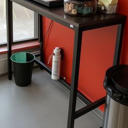 Plateau : Noyer Chant : angles Droits, Noyer, épaisseur 19 mm Piètement : Piètement Fixe forme Arche Noir Prix Neuf : 200 euros