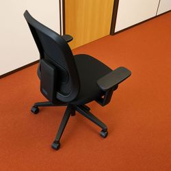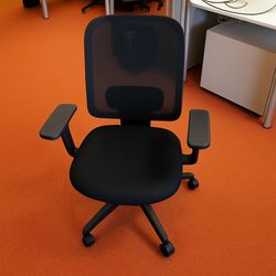 Mécanisme : Fauteuil Synchrone + Accoudoirs 2d Réglages : hauteur d’assise, profondeur d’assise, lombaire Dossier : Résille Noir Assise : Tissu Noir Piètement : Plastique 5 roulettes 50 mm Sol dur Prix Neuf : 250 euros