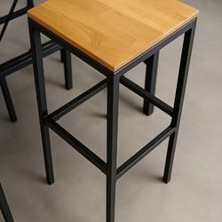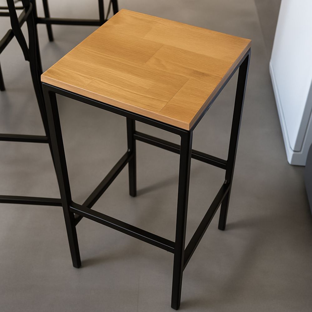 Tabouret : piètement 4 pieds Noir, Assise Bois Prix Neuf : 90 euros