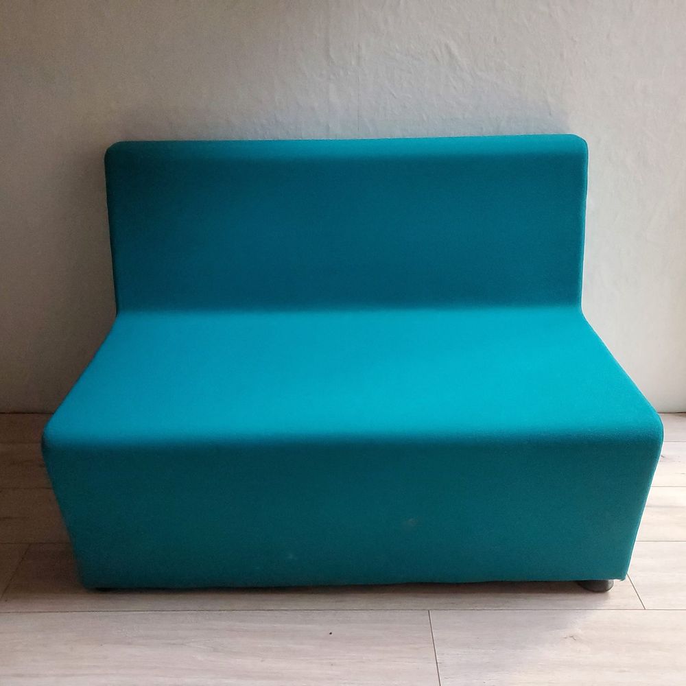 Banquette bleu turquoise Dossier et assise rembourré, textile enduit 1 banquette dossier droit 1 banquette dossier biseauté