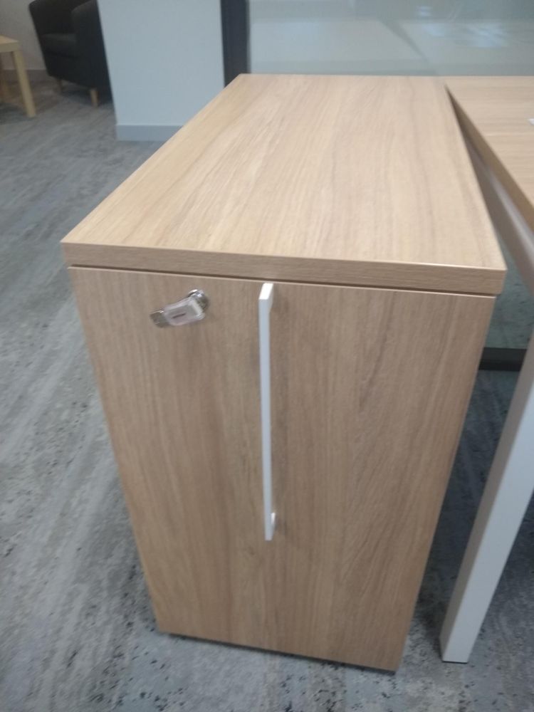 Caisson hauteur bureau Structure MFC (mélaminé) avec chants 1mm finition chêne clair Poignée finiton alu Avec clé