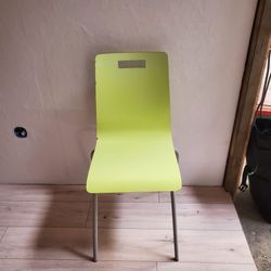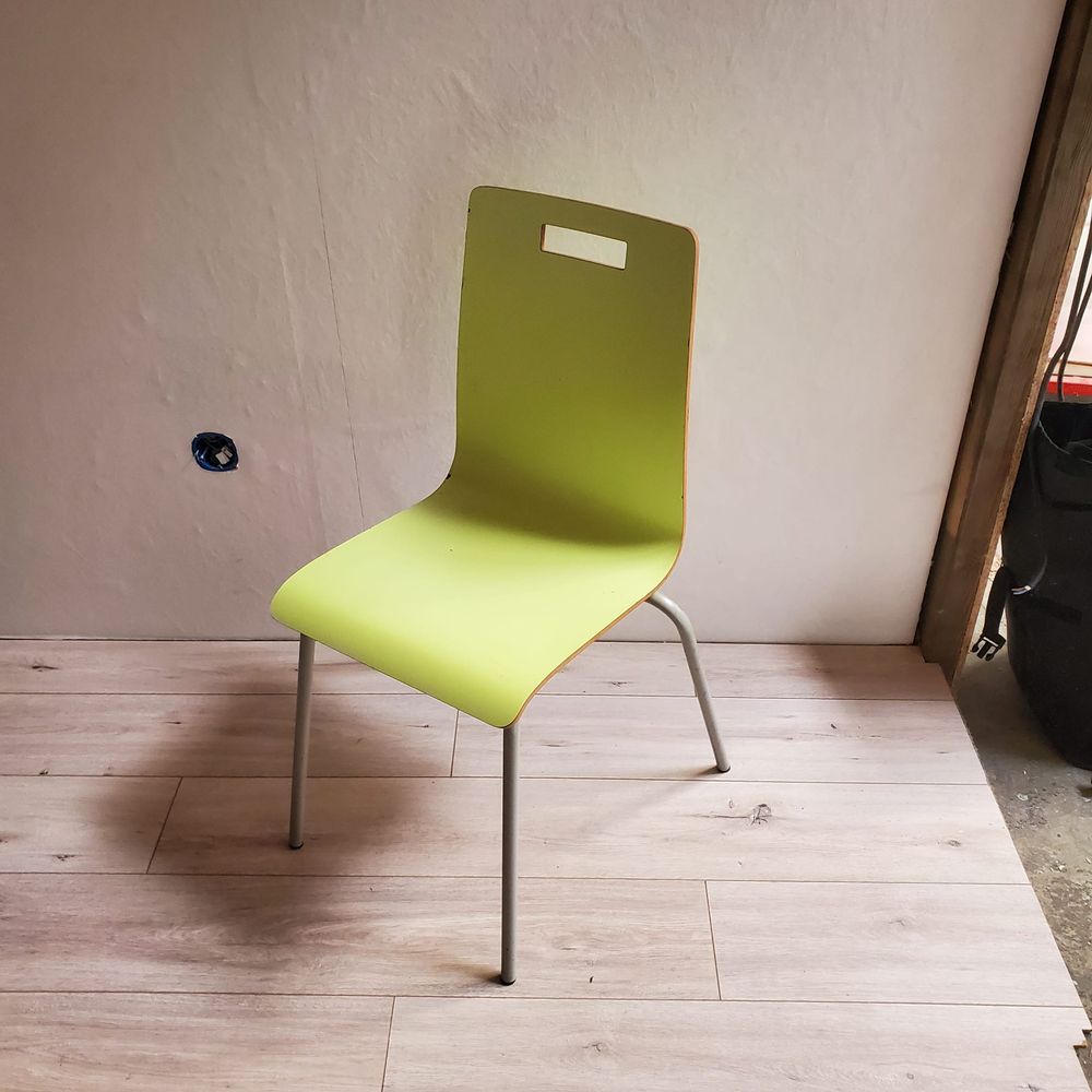 Chaise restauration verte Pied chrome, assise bois monobloc Empilable