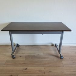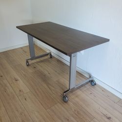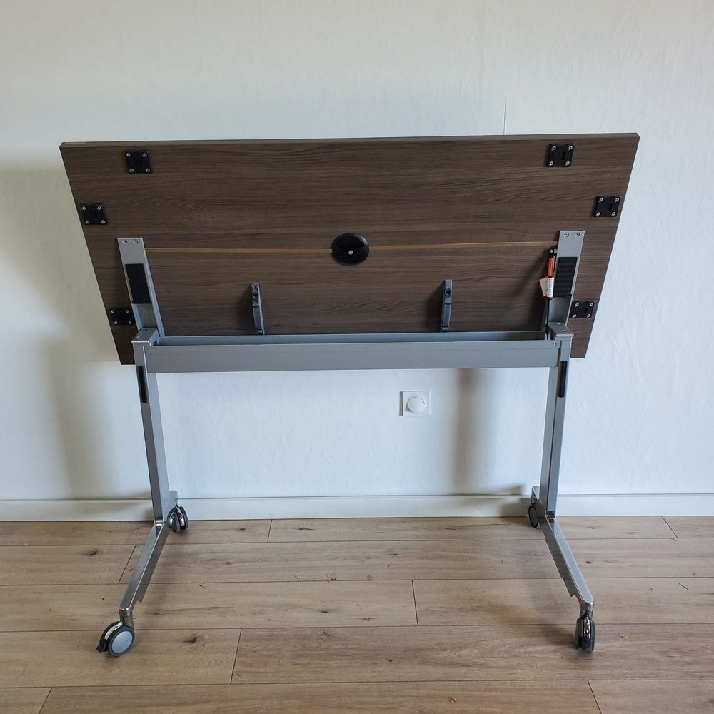 Table abattante sur roulettes Pieds chromé Plateau mélaminé finition ébène