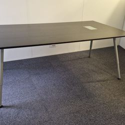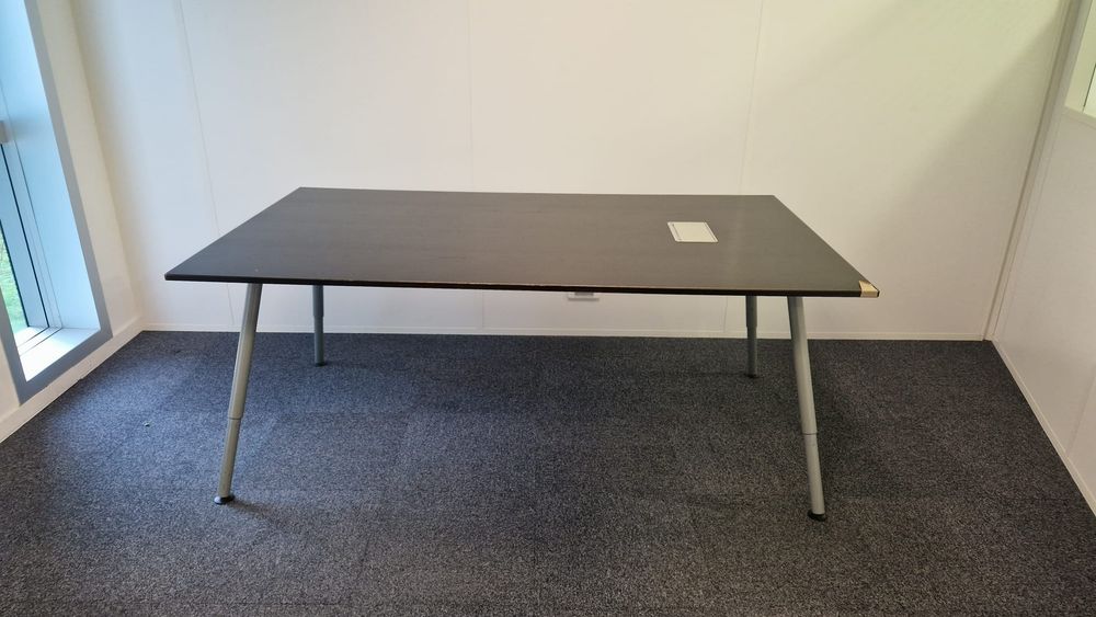Table de réunion 4 pieds finition alu réglable en hauteur Plateau finition ébène Trappe