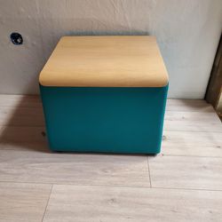 Tabouret bas forme carré Assise rembourrée, textile enduit bleu Possibilité d'avoir top en bois en chêne