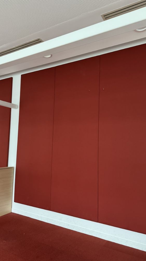 6 panneaux rouges : 110x320cm 7 panneaux jaunes : 110x320cm 8 panneaux noirs : 110x237cm