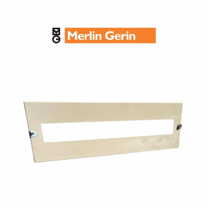 Plastron pour armoire Prisma - 150x500 - Ouverture 45x430 / Armoires et tableaux / Schneider / Merlin Gerin / RAL : 8025. Largeur : 500mm - Hauteur : 150mm - Ouverture : 45x430mm / P000000747